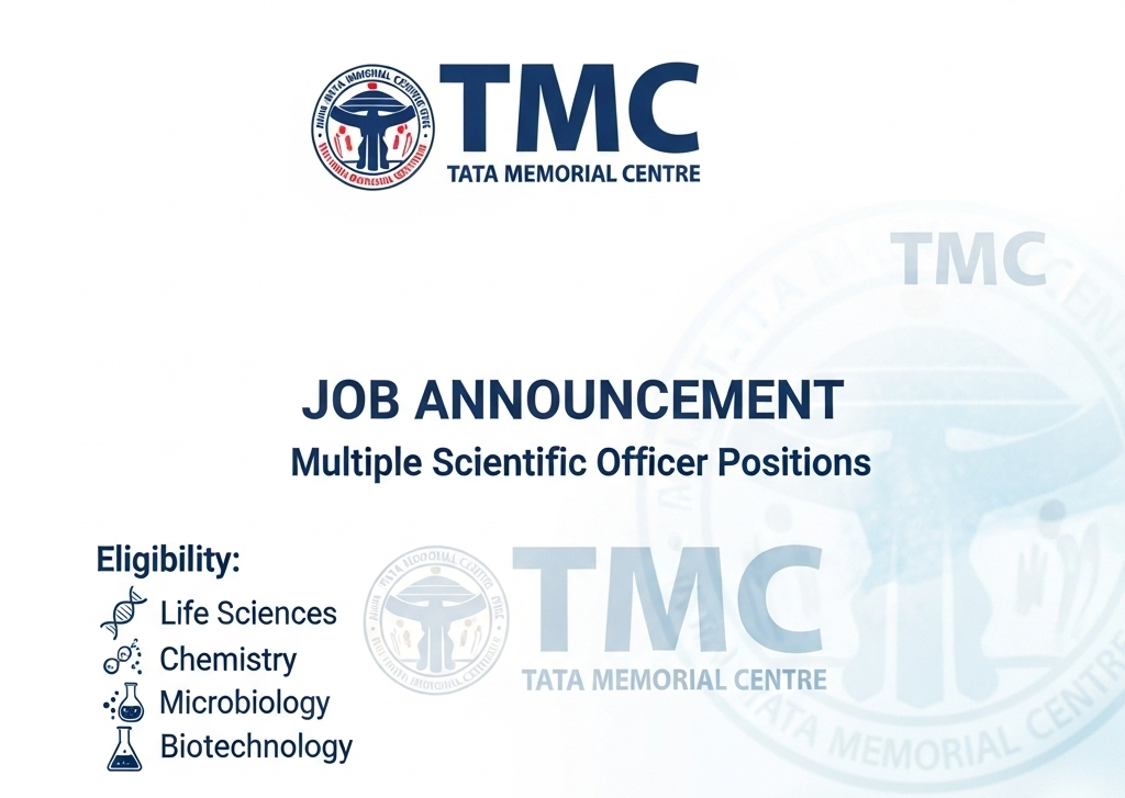 The Tata Memorial Centre (TMC), a premier cancer center funded by the Department of Atomic Energy, is inviting applications for several full-time Scientific Officer positions at its Homi Bhabha Cancer Hospital & Research Centres in New Chandigarh and Sangrur, Punjab.