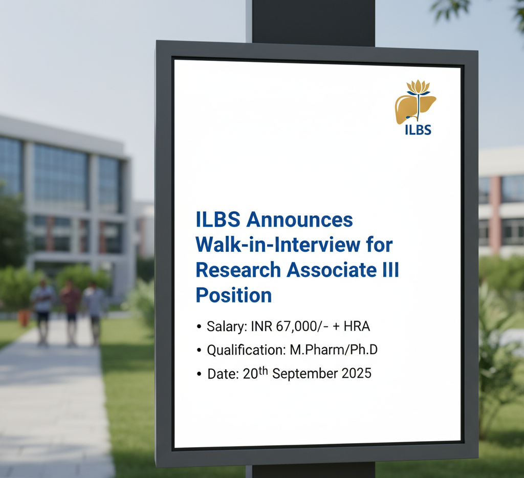 The Institute of Liver & Biliary Sciences (ILBS) is holding a walk-in-interview to fill a temporary vacancy for a Research Associate III. This role, part of the “Technical Resource Centre under Centre for Evidence based Guidelines” project, offers a salary of ₹67,000 per month plus HRA. The appointment is temporary, lasting until March 2026, with the potential for extension based on performance and fund availability.