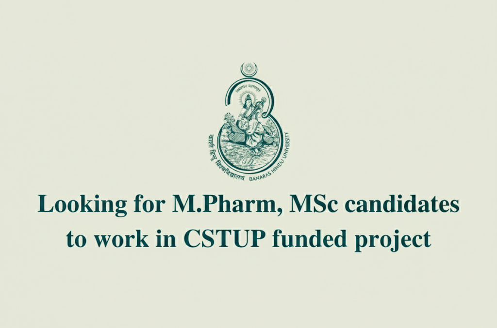 Banaras Hindu University (BHU) is inviting applications for a Research Assistant position (JRA/JRF/SRA) in a research project funded by the Council of Science & Technology, Uttar Pradesh (CSTUP). The project is titled: “Investigating the role of candidal Integrin as a Potential target of Cinnamaldehyde and Echinocandins.” This is a purely temporary position, co-terminus with the project’s duration.