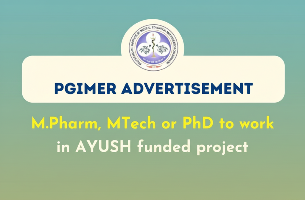 • Research Associate Opportunity: AYUSH-Funded Project at PGIMER Invites M.Pharm, M.Tech & PhD Candidates