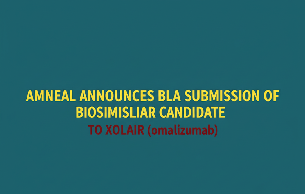 Amneal Pharmaceuticals, Inc. has announced the submission of a Biologics License Application (BLA) to the U.S. Food and Drug Administration (FDA) for a proposed biosimilar to XOLAIR® (omalizumab). This biosimilar candidate was developed by Kashiv BioSciences, LLC. XOLAIR® is a registered trademark of Novartis AG.