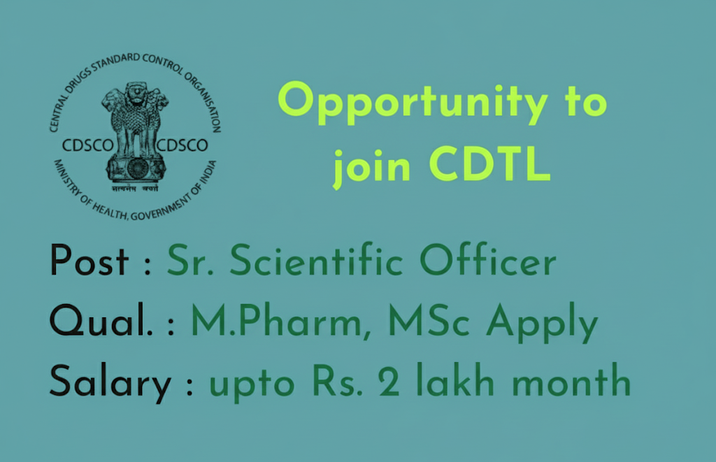 The Central Drugs Testing Laboratory (CDTL), Chennai, under the Central Drugs Standard Control Organisation (CDSCO), Ministry of Health & Family Welfare, is inviting applications for the post of Senior Scientific Officer on a Deputation basis.