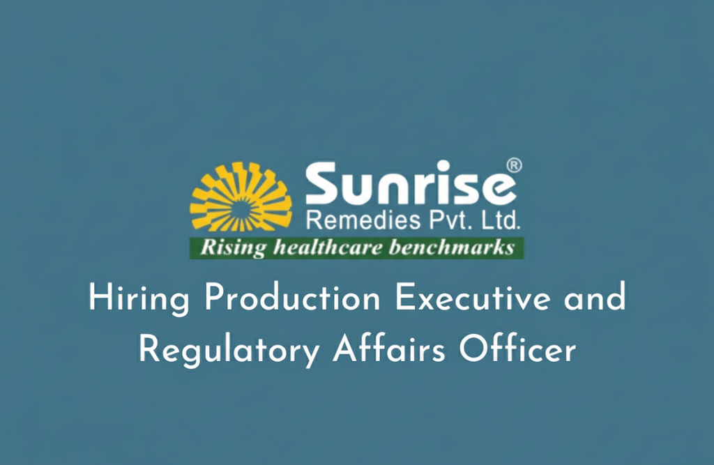 Sunrise Remedies Pvt. Ltd., a pharmaceutical company with roots dating back to 1984, is recruiting qualified and interested candidates for multiple positions.