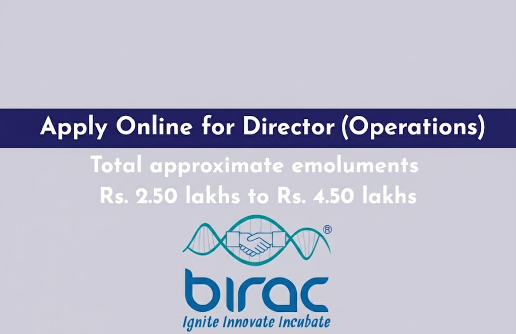 The Biotechnology Industry Research Assistance Council (BIRAC), a Public Sector Undertaking (PSU) under the Department of Biotechnology (DBT), Government of India, has re-opened the application window for the high-level executive position of Director (Operations). This senior role, a Member of the Board of Directors, involves spearheading innovation research, managing extensive investment programs, and driving strategic partnerships across India’s biotech ecosystem.