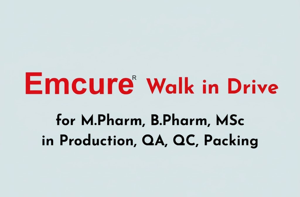 Emcure Pharmaceuticals, a rapidly growing global Indian pharmaceutical company, is conducting a Walk-in Interview for its Injectable and Oral Solid Dosage (OSD) manufacturing units located in Sanand, Surendranagar, and Mehsana (Gujarat).