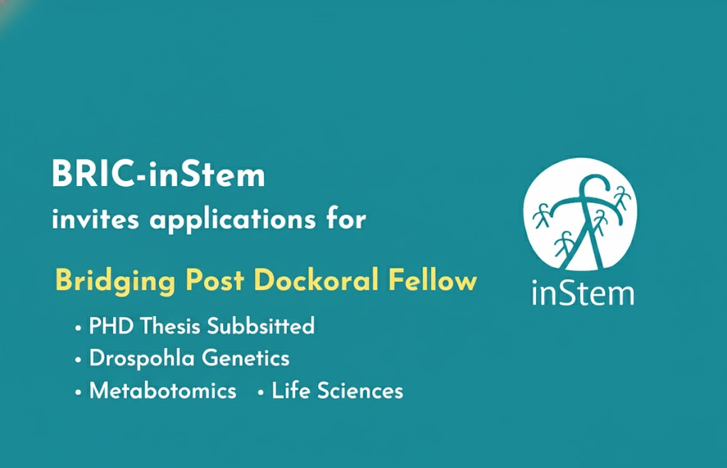 The Institute for Stem Cell Science & Regenerative Medicine (inStem), Bangalore, an autonomous institute under the DBT, is inviting online applications for a contractual position of Bridging Post Doctoral Fellow. This role is for a highly specific project involving fly genetics and metabolic studies.