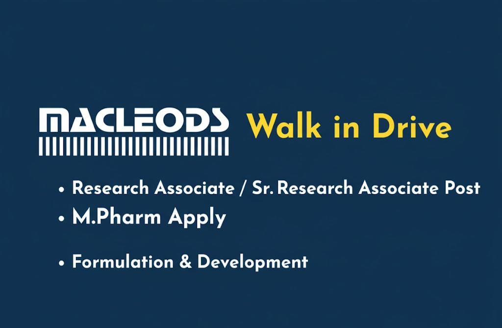 • Macleods Pharmaceuticals Walk-in Drive 2025 R&D Openings in Mumbai for M.Pharm Graduates