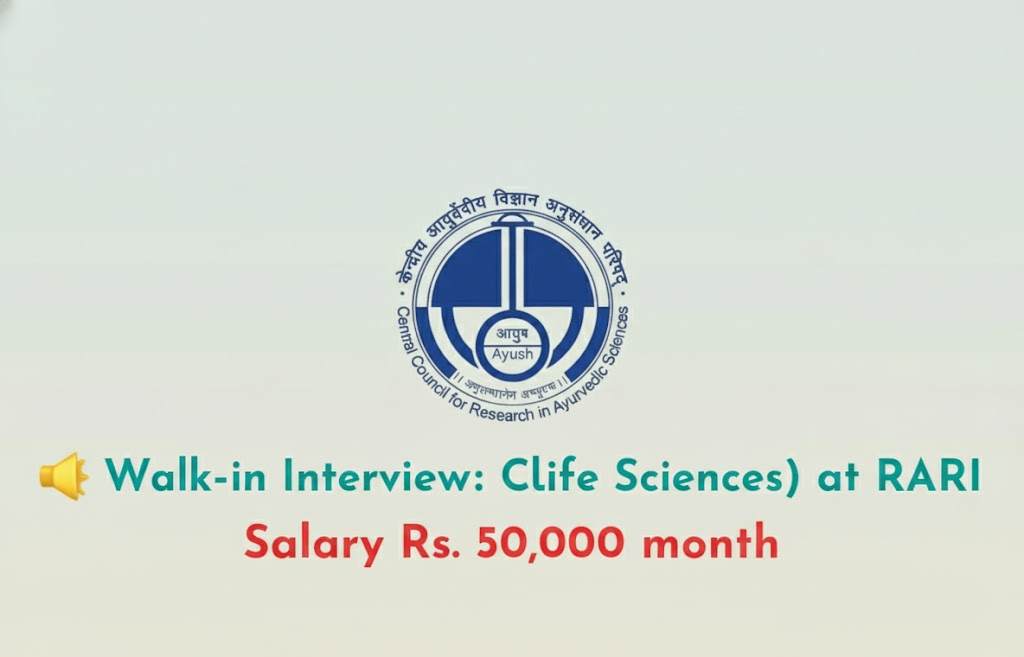 The Regional Ayurveda Research Institute (RARI), Thiruvananthapuram, is conducting a walk-in interview for the post of Consultant (Life Sciences) on a contractual basis. The position is part of a collaborative project with the Rajiv Gandhi Centre for Biotechnology (RGCB), entitled “Understanding Prakriti and its inheritance pattern in health and predominant disease predisposition from a regional perspective- A genetic and epigenetic study.”