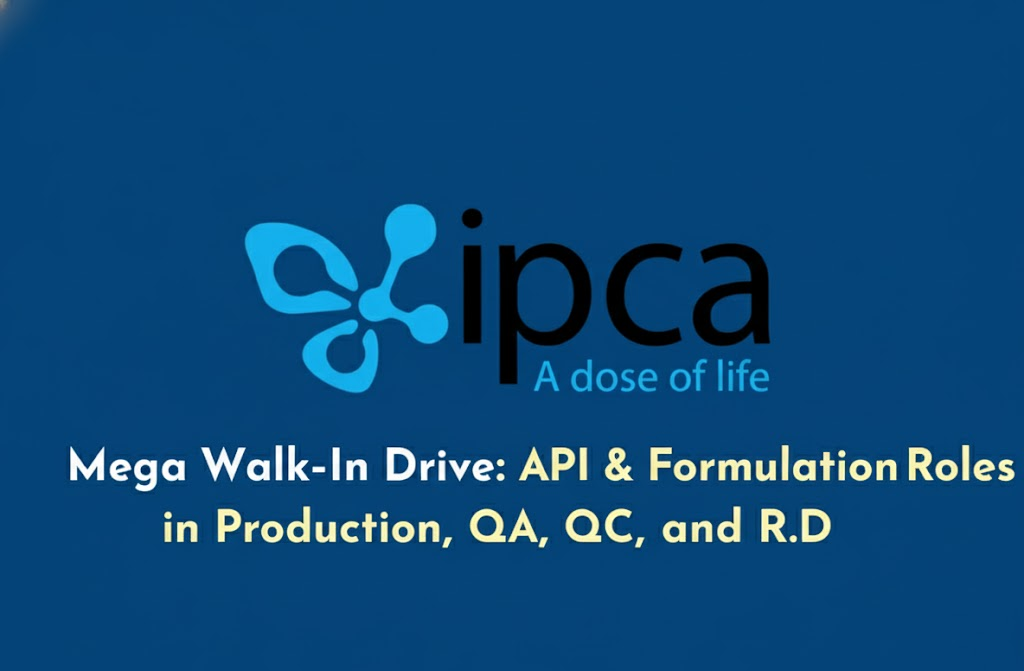 • IPCA Laboratories Mega Walk-In Drive API & Formulation Roles in Production, QA, QC, and R&D