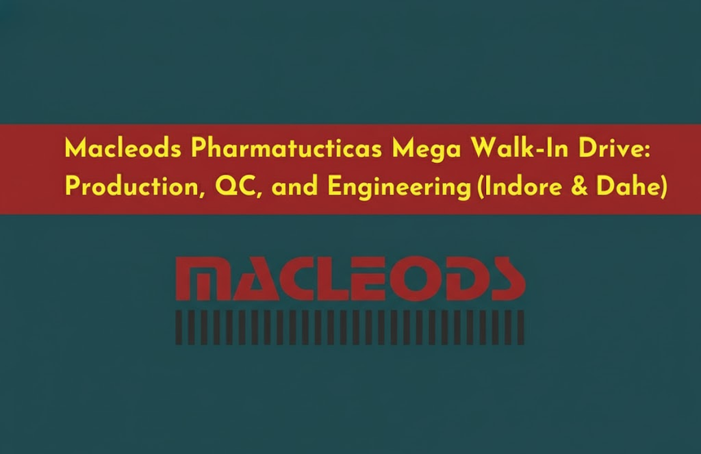 Macleods Pharmaceuticals, one of India’s fastest-growing and top-ranked pharmaceutical companies, is conducting a major Walk-In Interview drive for various experienced roles across its manufacturing functions in Indore and Dahej.