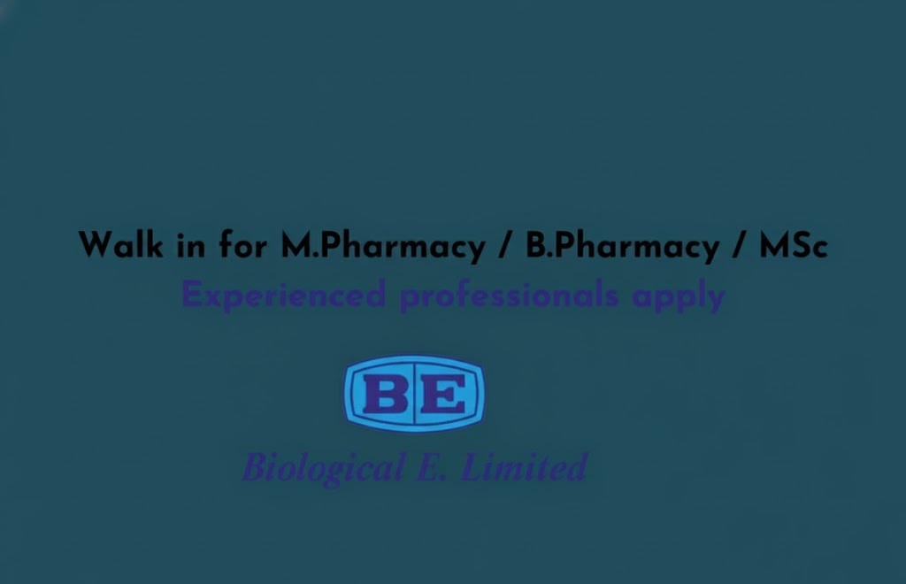 Biological E. Limited (BE), a pioneering pharmaceutical company in India with strategic business units including Speciality Generic Injectables and Vaccines & Biologics, is conducting a walk-in interview drive. The recruitment is for experienced professionals to join its Speciality Injectables Business facility located in Shamirpet, Hyderabad.