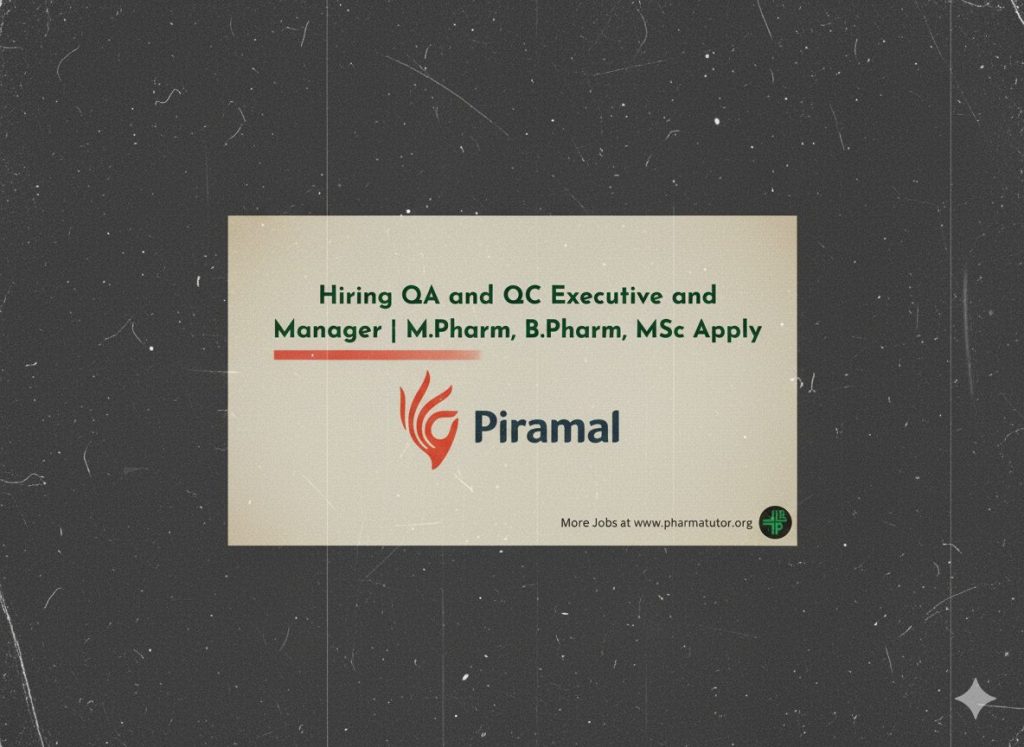 Piramal Pharma Limited, a globally recognized pharmaceutical company, is conducting a walk-in interview drive for experienced professionals in its Quality Assurance (QA) and Quality Control (QC) departments at its Pithampur (Indore) facility in Madhya Pradesh.