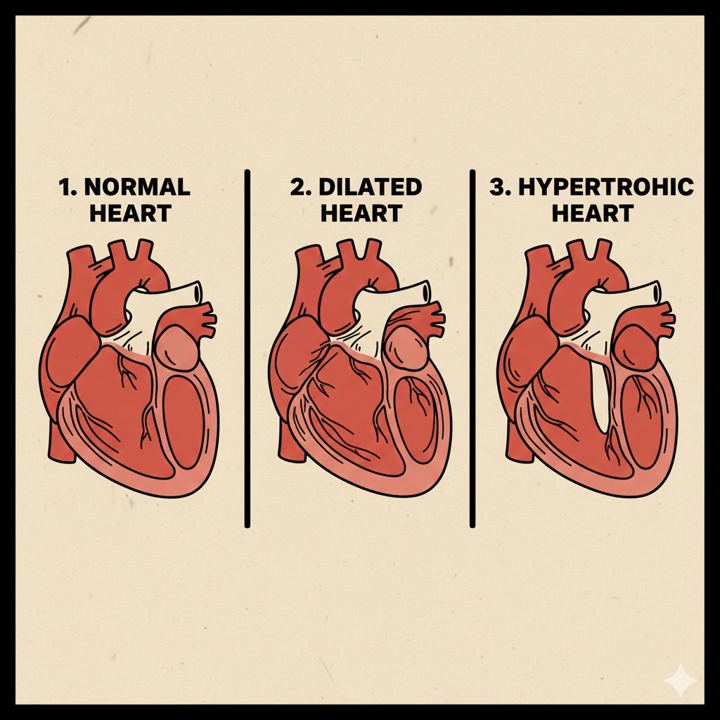 Unlike coronary artery disease (which affects the “pipes”), cardiomyopathy affects the “pump” itself. There are three main ways the muscle changes: