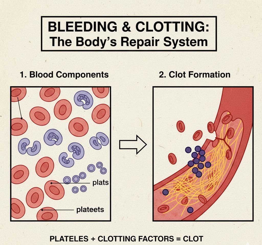Under normal circumstances, your body has a built-in “repair kit” designed to seal damaged blood vessels and stop blood loss. This process involves two main components: