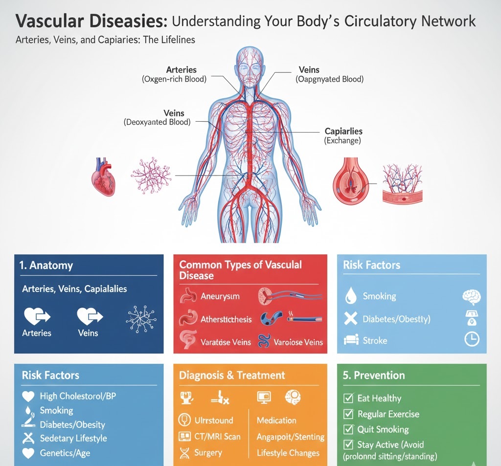 The vascular system is an expansive network of “pipes” responsible for transporting life-sustaining blood throughout the body. When these vessels become damaged, blocked, or weakened, it results in vascular disease. Understanding this system is crucial because it connects every major organ, from your brain to your toes.