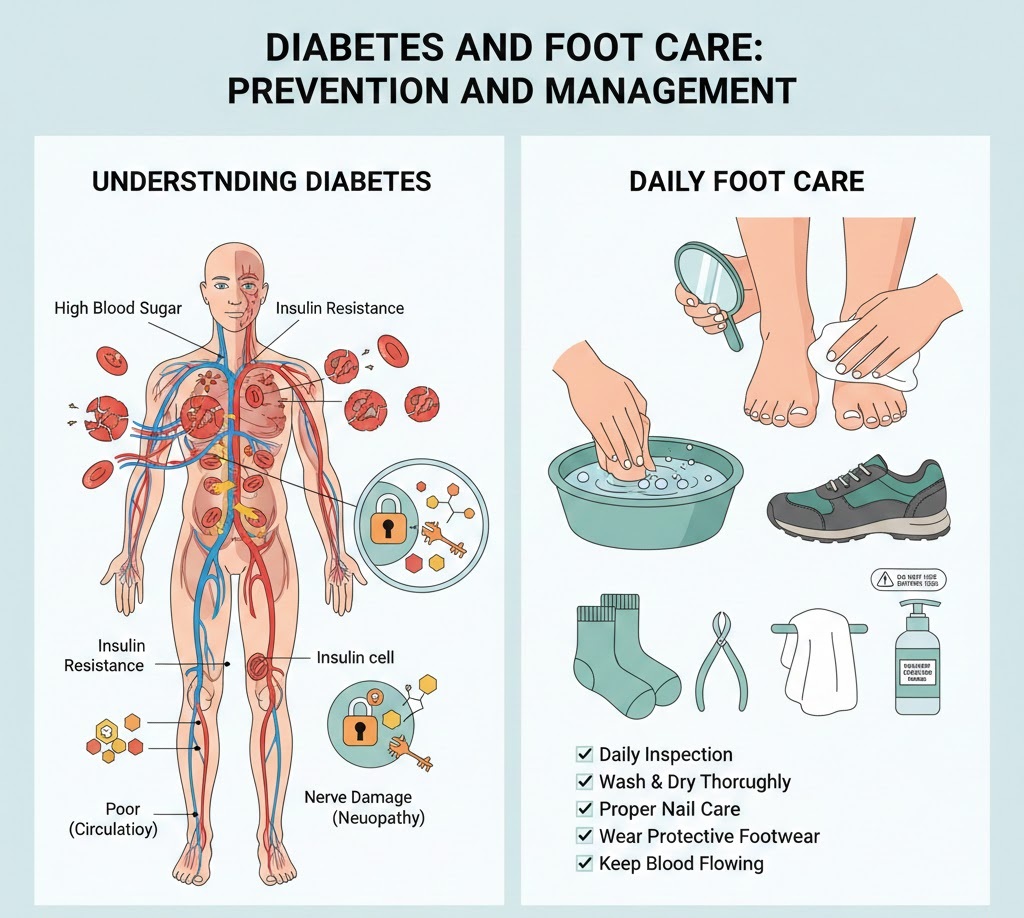 - Peripheral Vascular Disease (Poor Circulation): Diabetes damages blood vessels, reducing blood flow to the extremities. Without good blood flow, it is much harder for the body to heal sores or fight off infections.+1