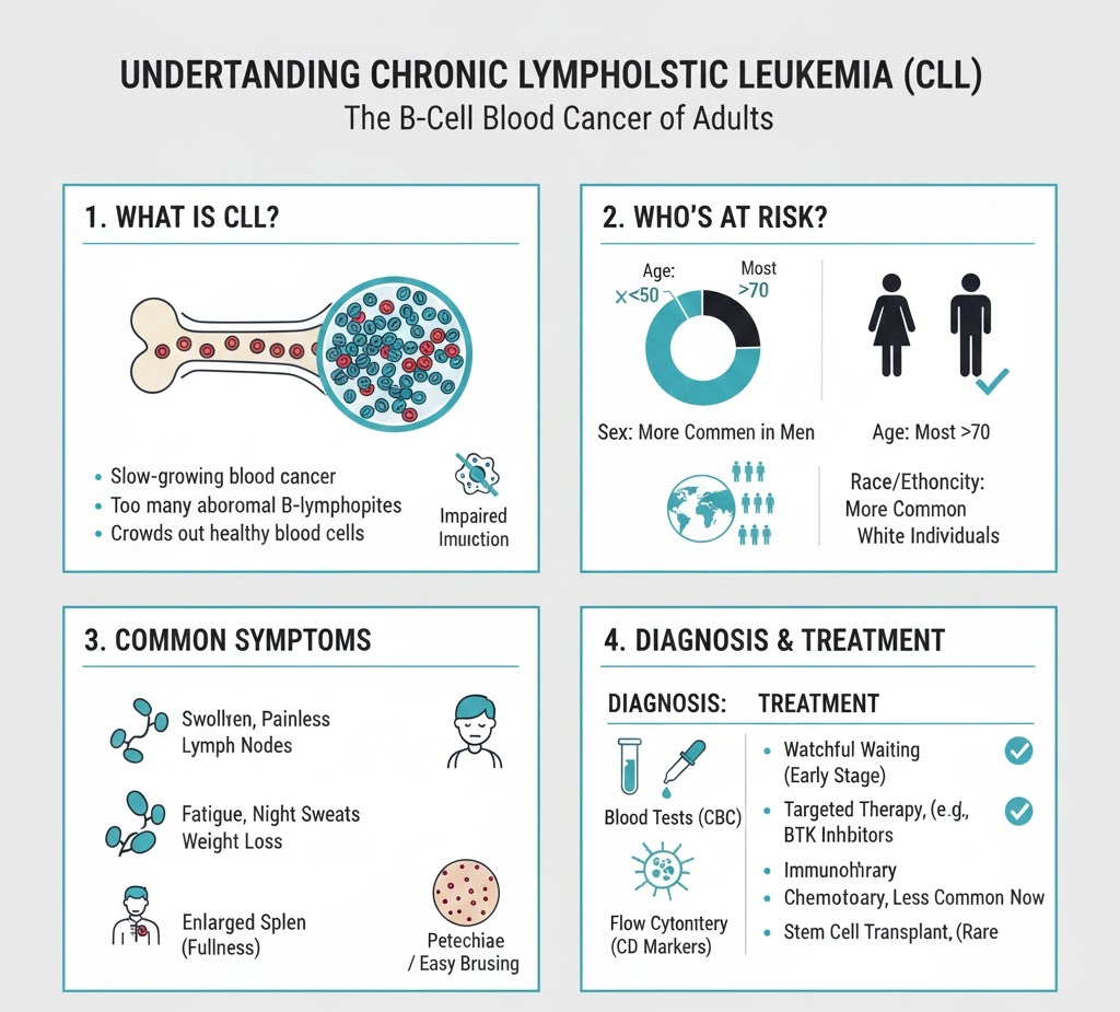Unlike many other cancers, “Watchful Waiting” (Active Surveillance) is a standard approach for early-stage CLL. Treatment begins only when the disease becomes “active” or causes significant symptoms.