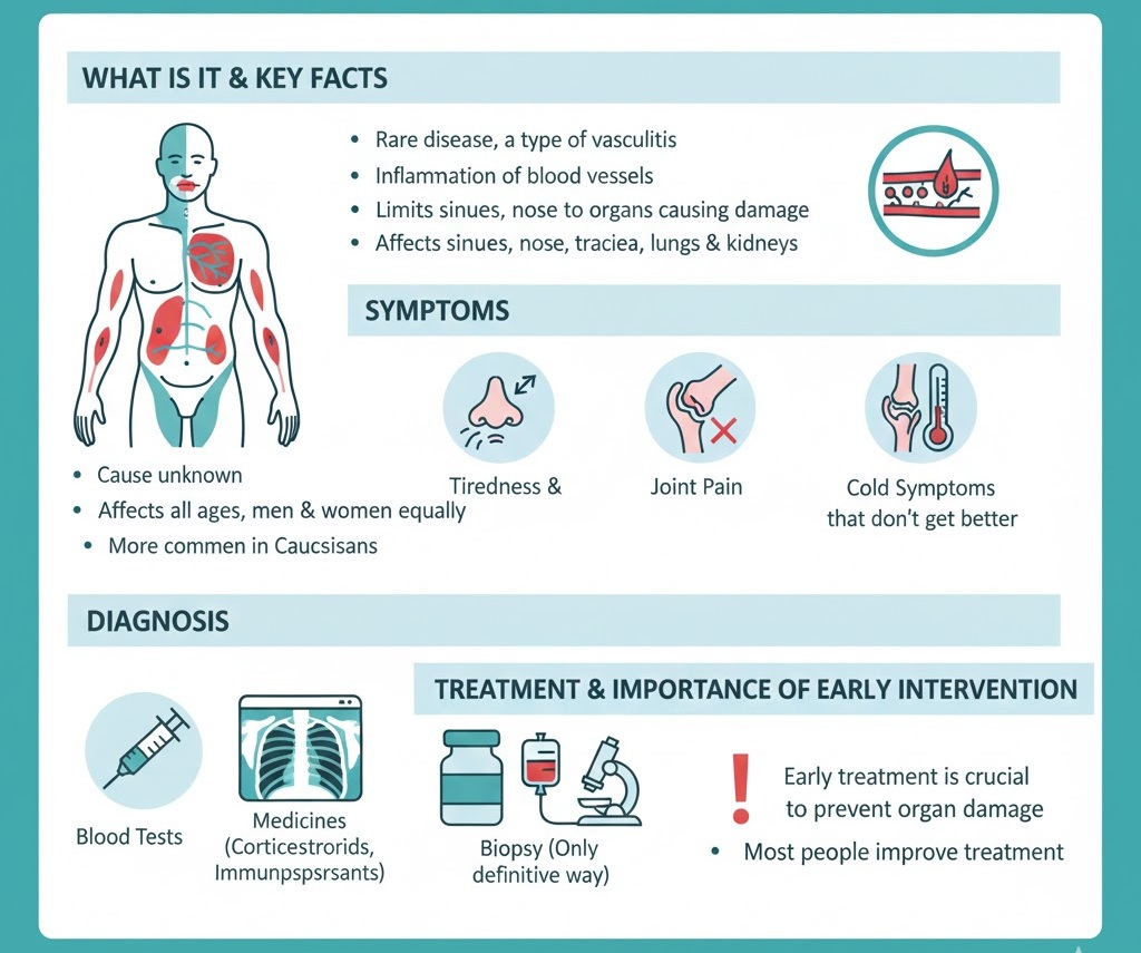 - Blood Tests: To check for markers of inflammation and specific antibodies (like ANCA).