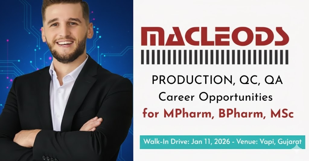 Macleods Pharmaceuticals, a top-tier global pharmaceutical leader, is hosting a recruitment drive for experienced professionals. This drive targets candidates for their API units in Sarigam and Formulation/Injectable units in Daman. If you are looking to elevate your career with a fast-growing organization, join the walk-in on January 11th.