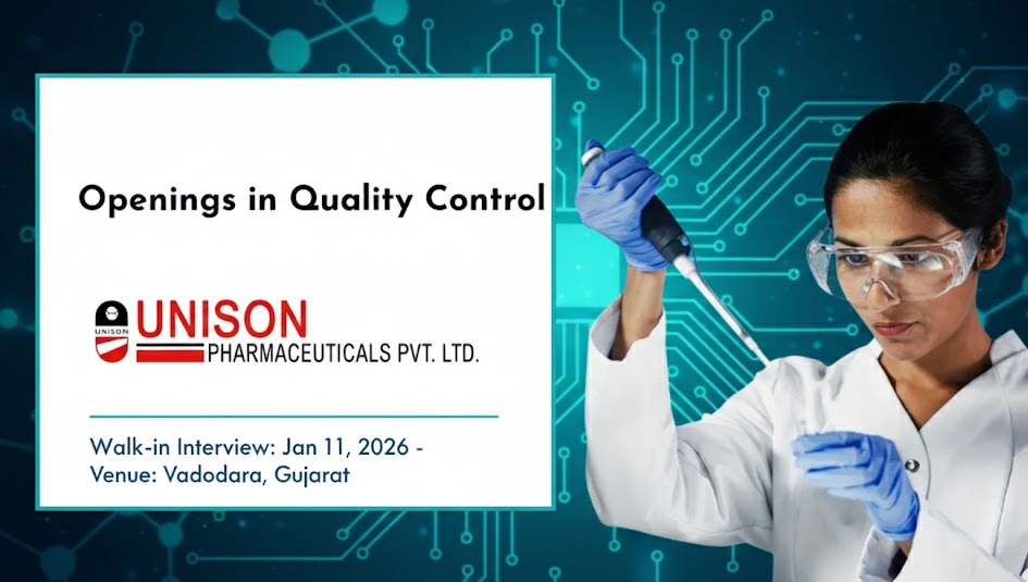 Unison Pharmaceuticals, a fast-growing pharmaceutical leader established in 1981, is expanding its team to meet its Vision 2030 goals. The company is seeking skilled professionals for its manufacturing facility in Moraiya, Ahmedabad. This recruitment drive targets experienced candidates in both laboratory analysis and technical plant maintenance.
