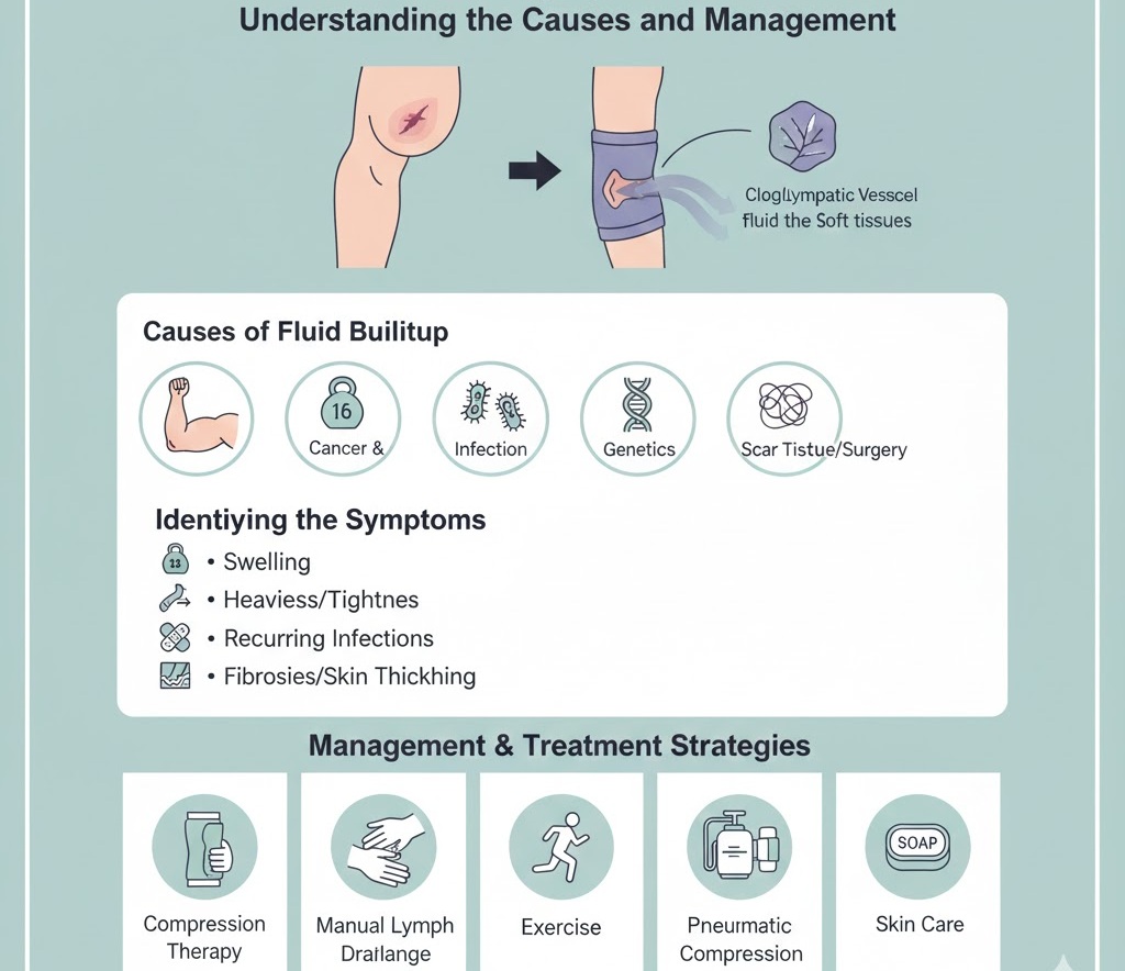 Normally, the lymphatic system drains this fluid through a network of vessels and nodes. When this system is damaged or blocked, the fluid pools, most commonly in the arms or legs, leading to significant swelling and discomfort.