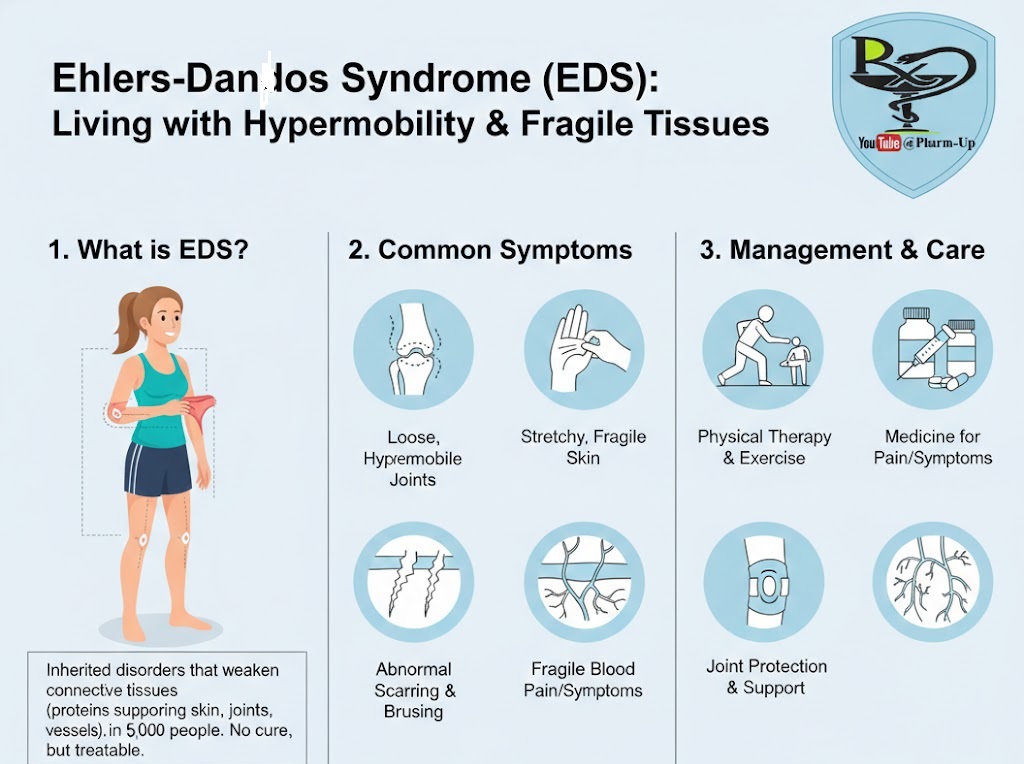 Ehlers-Danlos syndrome (EDS) is a group of inherited disorders that affect the connective tissues—the vital proteins that provide structure and support to your skin, bones, blood vessels, and internal organs. When these tissues are weakened, it impacts the body’s “glue,” leading to a range of systemic symptoms.