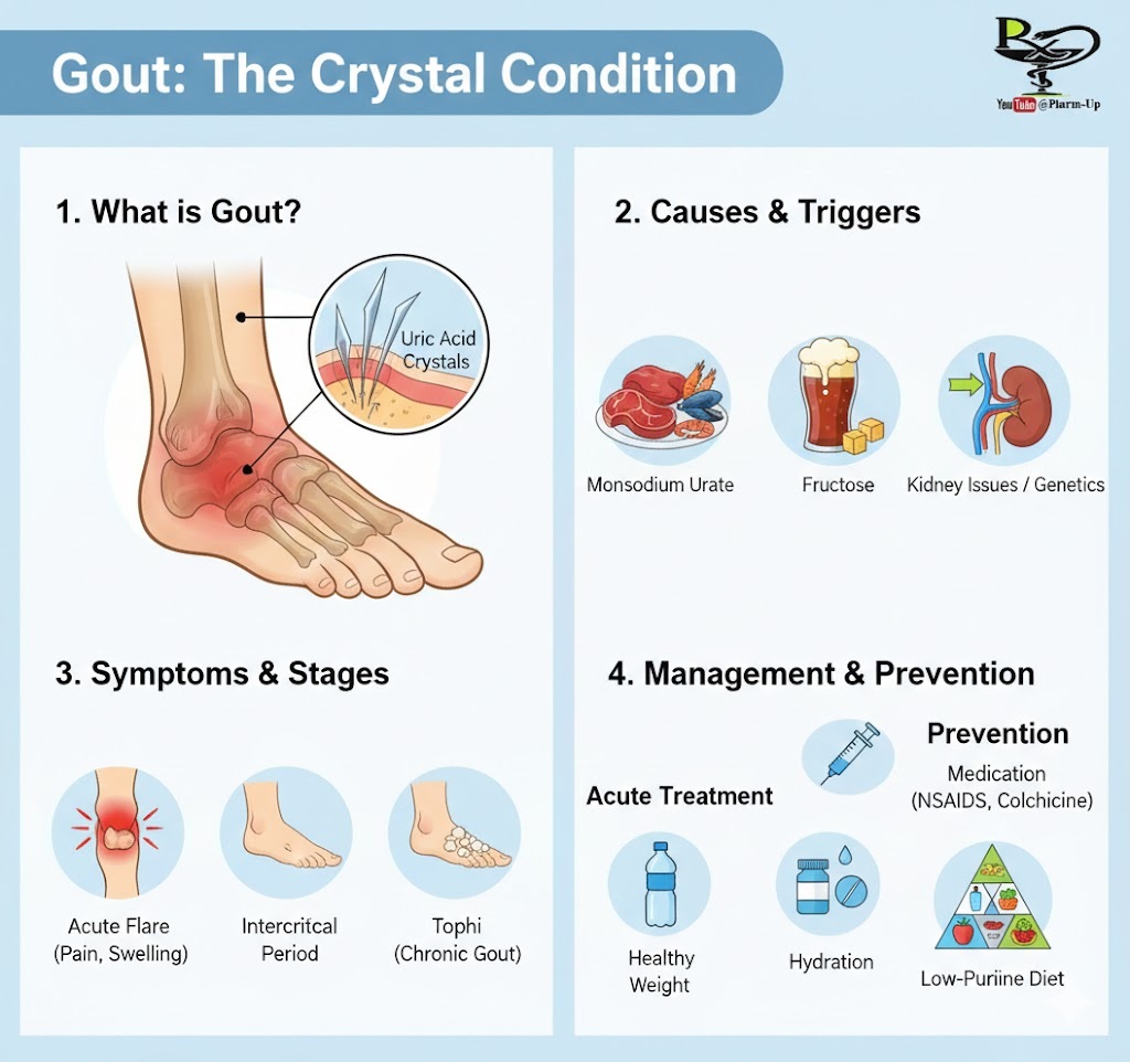 - Acute Treatment: NSAIDs (like ibuprofen), Colchicine, or Corticosteroid injections to stop the flare.