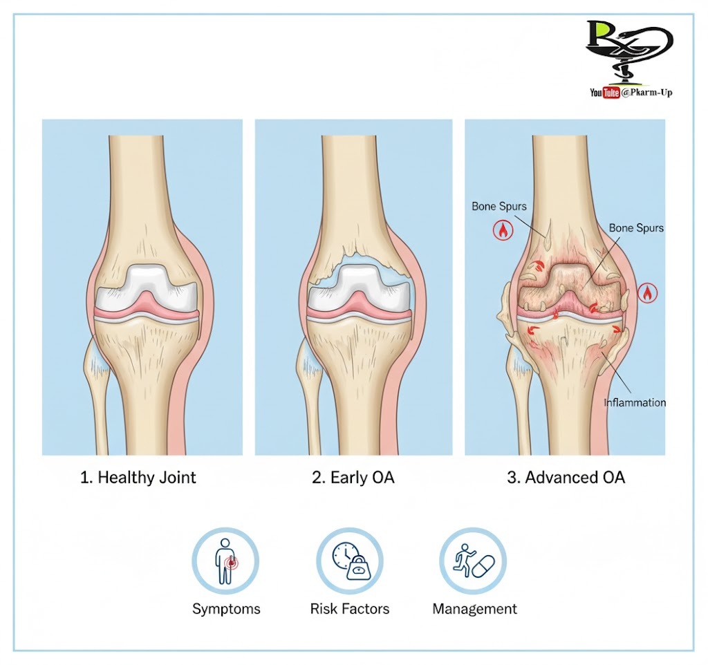 - Cartilage Breakdown: In OA, this cartilage becomes rough and wears down.