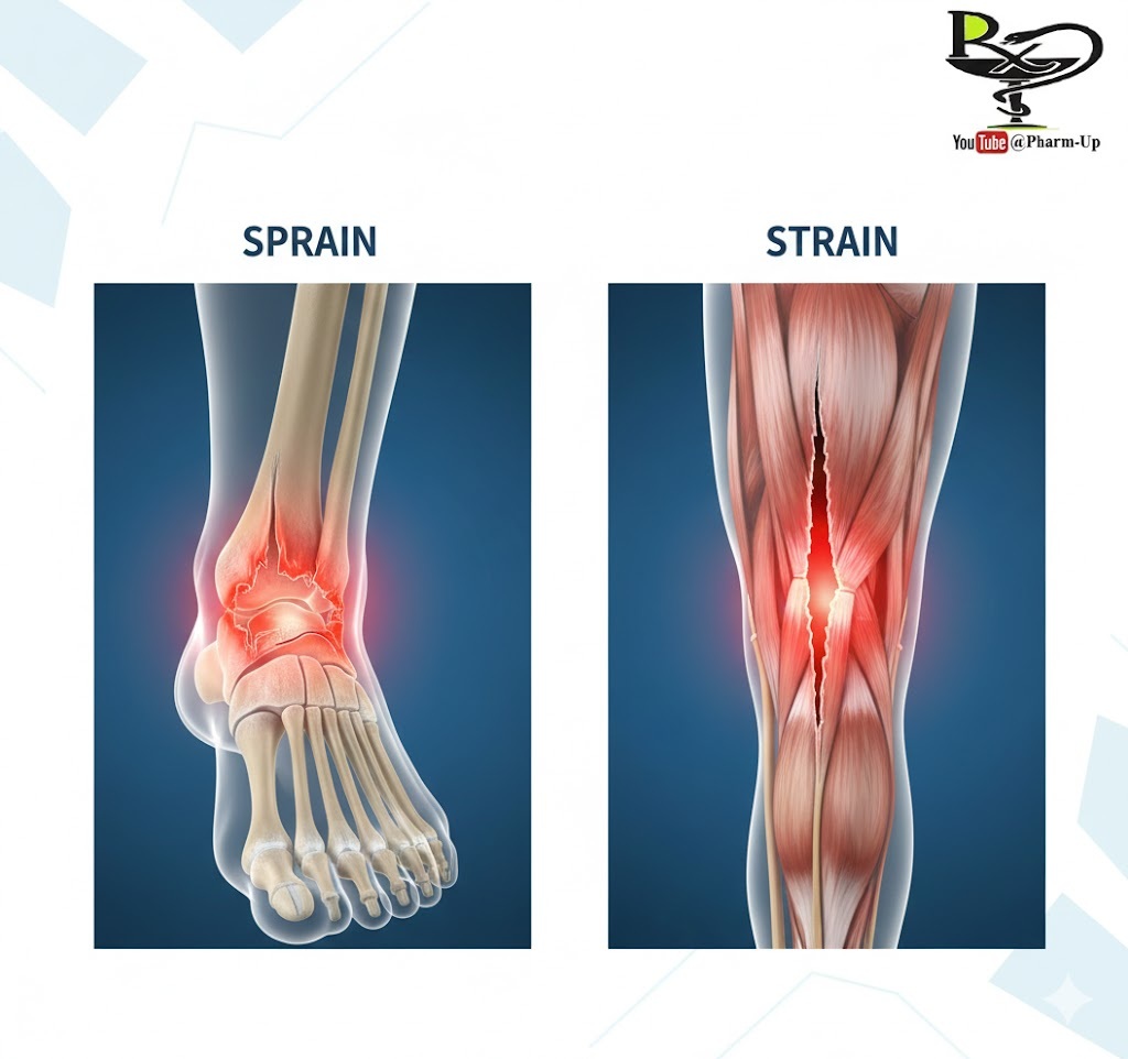 | Affected Tissue | Ligament (connects bone to bone) | Muscle or Tendon (connects muscle to bone) |