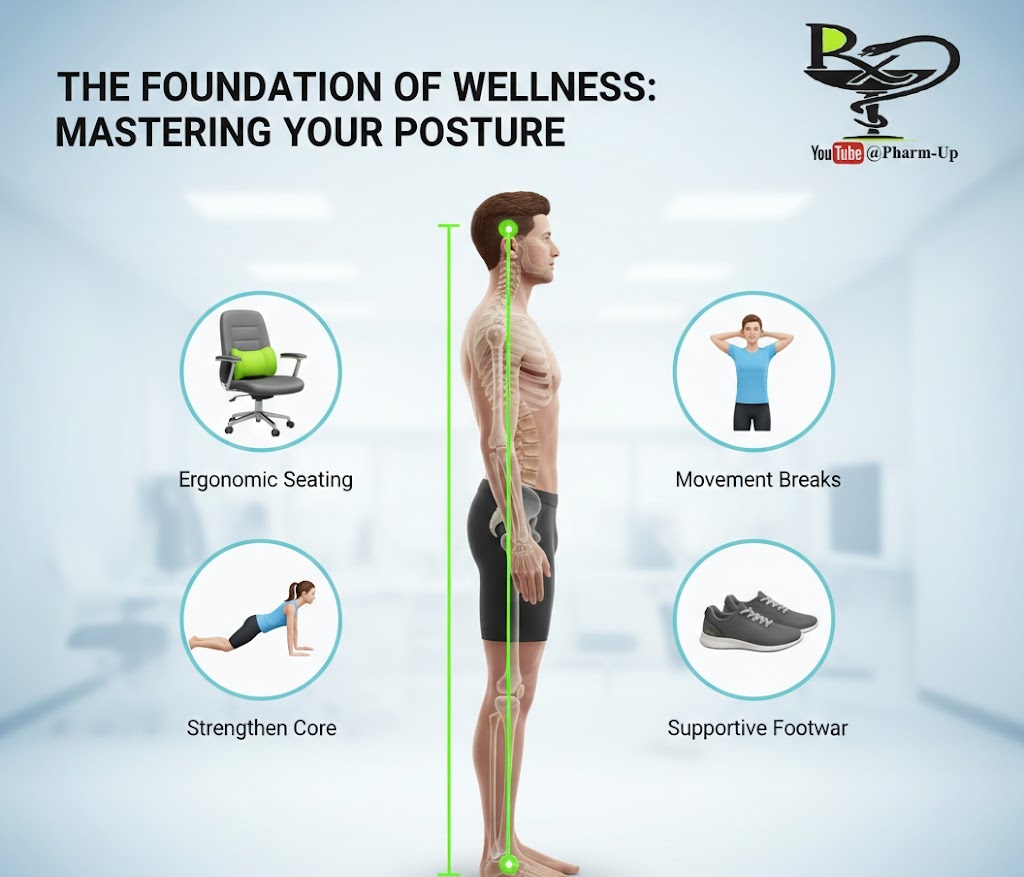 - The Core Connection: Good posture relies heavily on “core” muscles—the abdomen, pelvis, and back—to stabilize the spine.