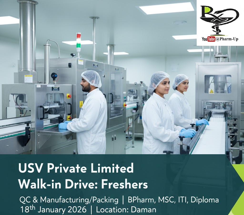USV Private Limited, a prestigious 63-year-old healthcare leader and the #1 ranked company in Oral Anti-Diabetics, is hosting a walk-in drive for Freshers at its USFDA, MHRA, and EU-approved facility in Daman.