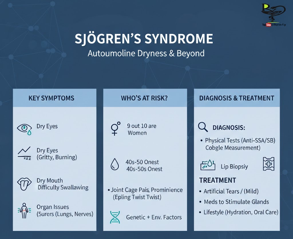 Sjögren’s (pronounced SHOW-grins) syndrome is a chronic autoimmune disorder where the body’s immune system mistakenly attacks its own moisture-producing glands. While it is primarily known for causing systemic dryness, it is a complex condition that can affect multiple organ systems.