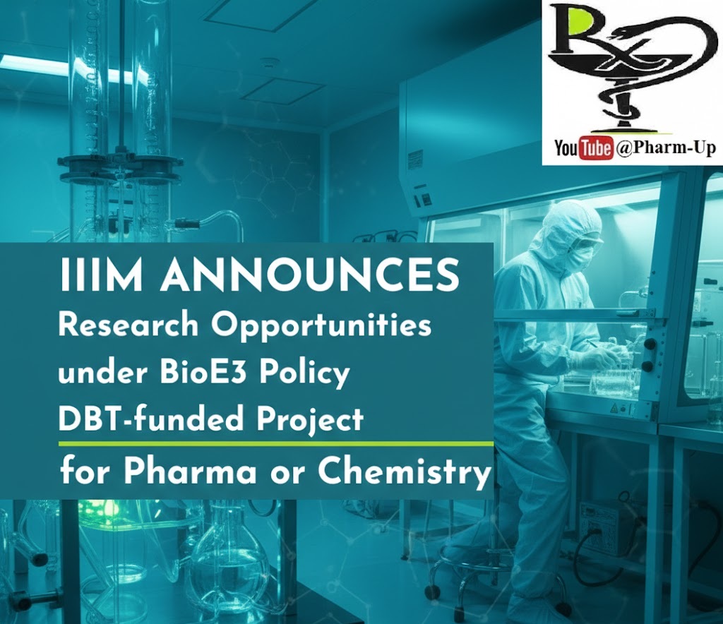 The CSIR-Indian Institute of Integrative Medicine (CSIR-IIIM), Jammu, has announced a high-value research opening under the Government of India’s BioE3 Policy.