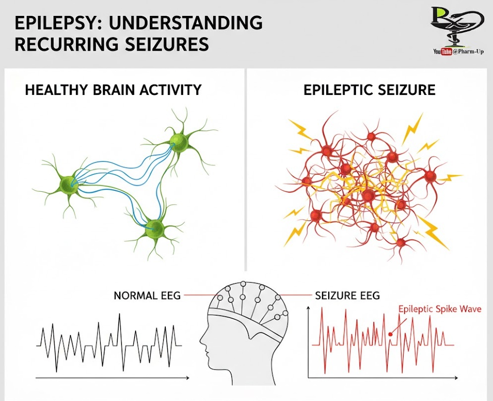 Epilepsy is a chronic neurological disorder characterized by recurrent, unprovoked seizures. A seizure is a sudden surge of electrical activity in the brain that occurs when neurons (nerve cells) send out disorganized or “misfired” signals.