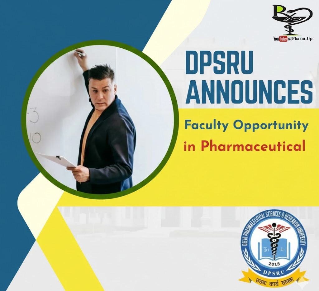 Delhi Pharmaceutical Sciences and Research University (DPSRU), India’s first pharmacy university and a premier state government institution, has announced multiple faculty openings. The university is seeking qualified and motivated professionals for Assistant Professor (Short-term) and Guest Faculty roles across various specialized departments.