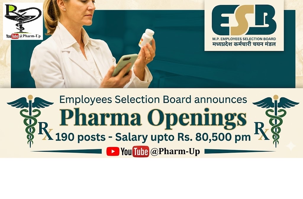 The Madhya Pradesh Employees Selection Board (MPESB) has officially released a recruitment notification for several pharmaceutical and healthcare positions across the state. This drive aims to fill 184 vacancies, including roles for Drug Coordinators, Pharmacists (Grade-II), and Compounders in Ayurveda, Homeopathy, and Unani departments.