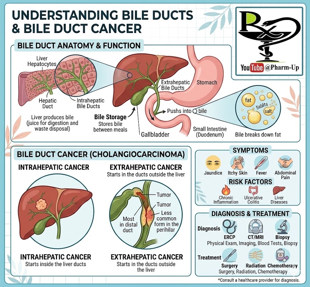 - Extrahepatic Bile Duct Cancer: Starts in the ducts located outside the liver (This is the most common form).