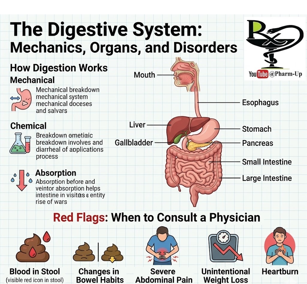 - Ingestion & Transport: Food moves through the esophagus via peristalsis (muscle contractions).
