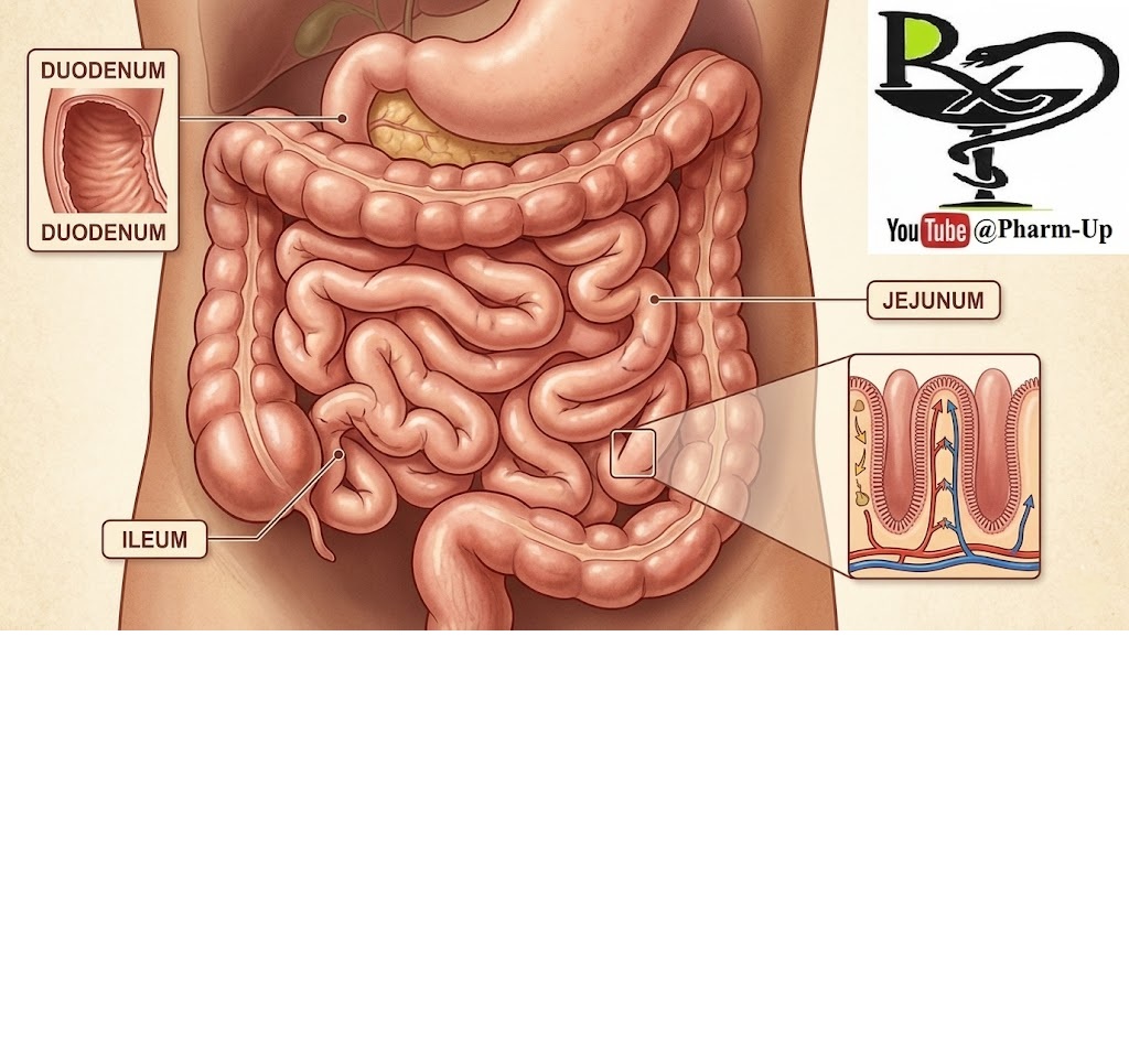 - Jejunum: The middle section where most nutrient absorption takes place.